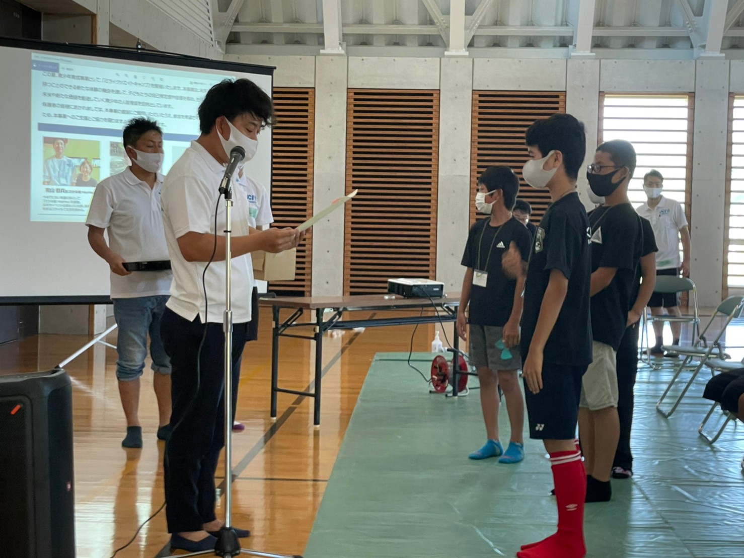 この日の講師は、会場である地元秋穂出身の元プロサッカー選手、半田優希さん。