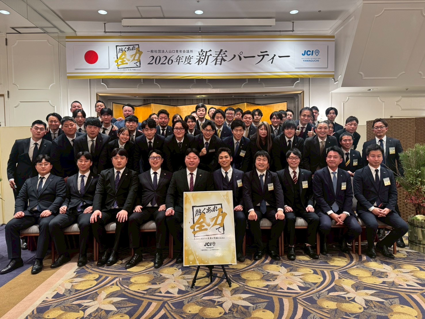 令和8年(2026年)1月7日(水)、山口市内の「かめ福オンプレイス」にて、山口青年会議所 2026年度新春パーティーを盛大に開催いたしました。